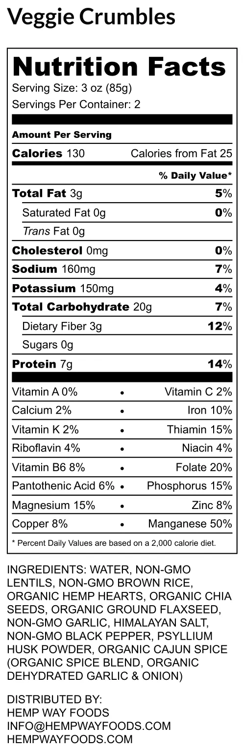 Hemp Way Foods now offers a variety of award-winning products. Be sure to try our other savory creations — hemp burger crumbles and hemp breakfast sausage!
